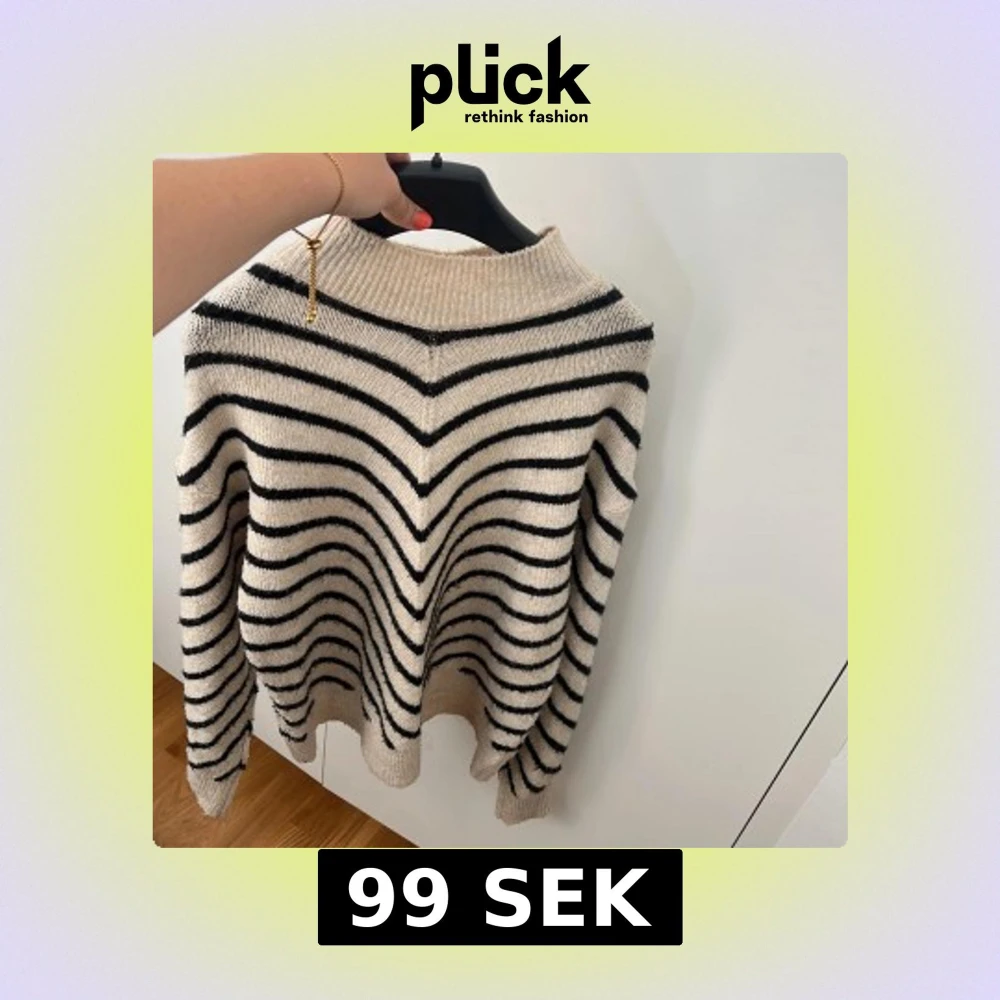 Säljer en beige stickad tröja med svarta ränder som inte kommer till användning längre. Köptes på Mango för några år sedan. Perfekt nu till hösten!🤎