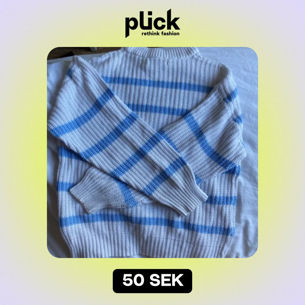 Vit och blĂ„ randig stickad lĂ„ngarmad tröjađ