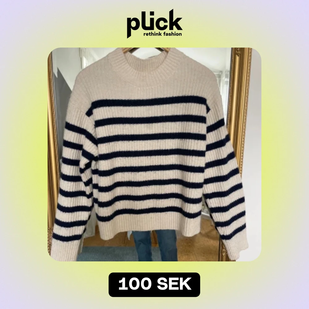 Säljer denna randiga stickade tröja från HM. Har små tecken på användning. Köparen står för frakten, kan även hämtas upp i Uppsala.