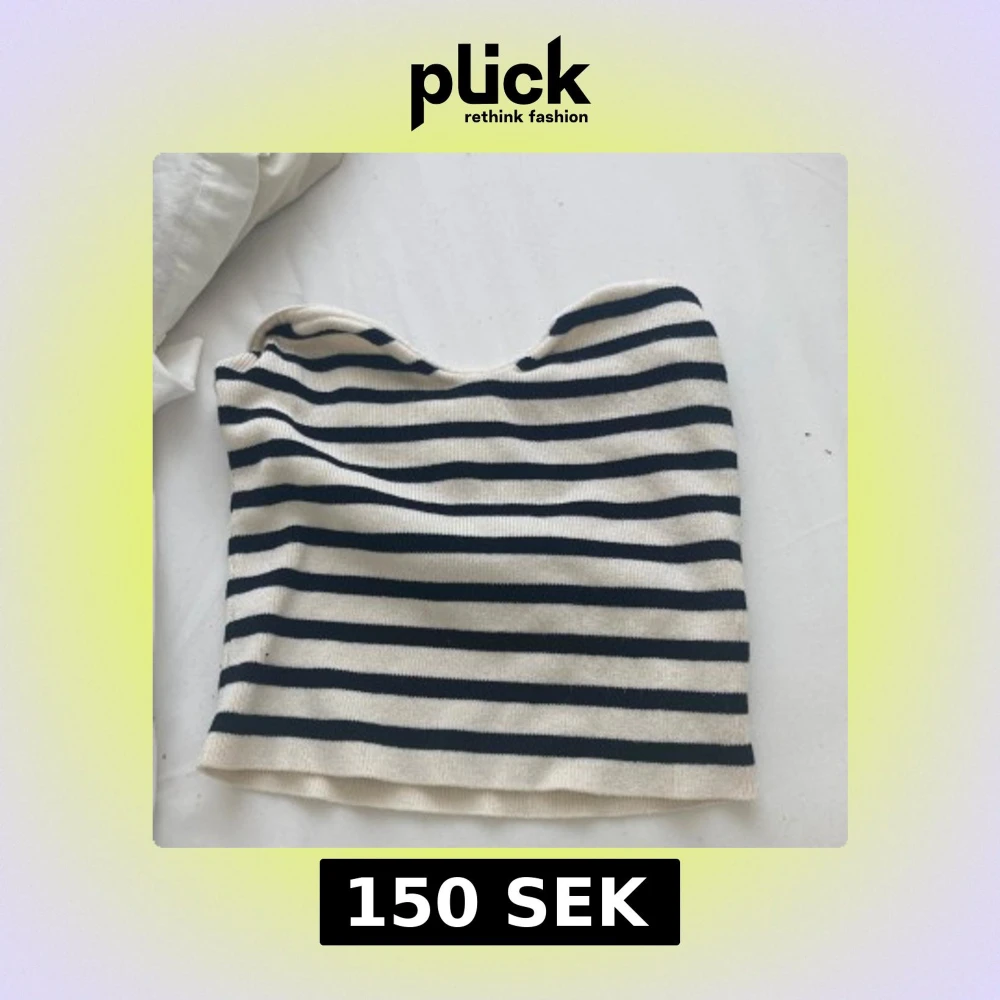 Snygg randig tubtopp från H&M i vitt och svart. Toppen är stickad och bandeau-modell, perfekt för en chill och trendig look. Passar till både jeans och kjol för en avslappnad vibe.