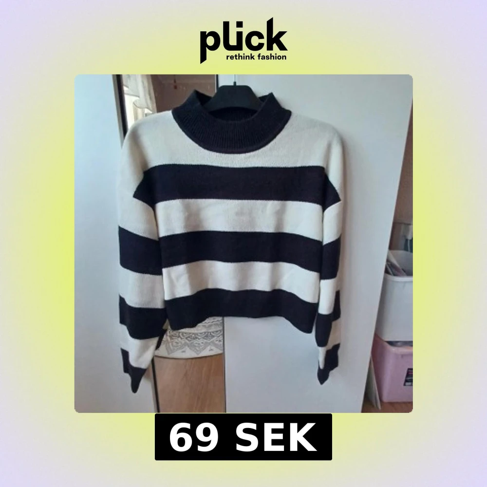 Säljer en snygg svart-vit randig tröja från H&M . Tröjan har en kort passform med långa armar med halvpolo💕 Den är tillverkad i ett mjukt material som känns skönt mot huden. Sällan använd!