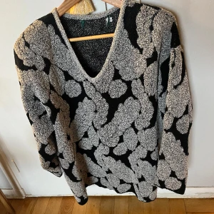 Stickad mönstrad tröja med axelvaddar, vintage. Känns tung och lyxig! Fint skick, inget att anmärka på. Sitter oversize på mig som vanligtvis är en M.