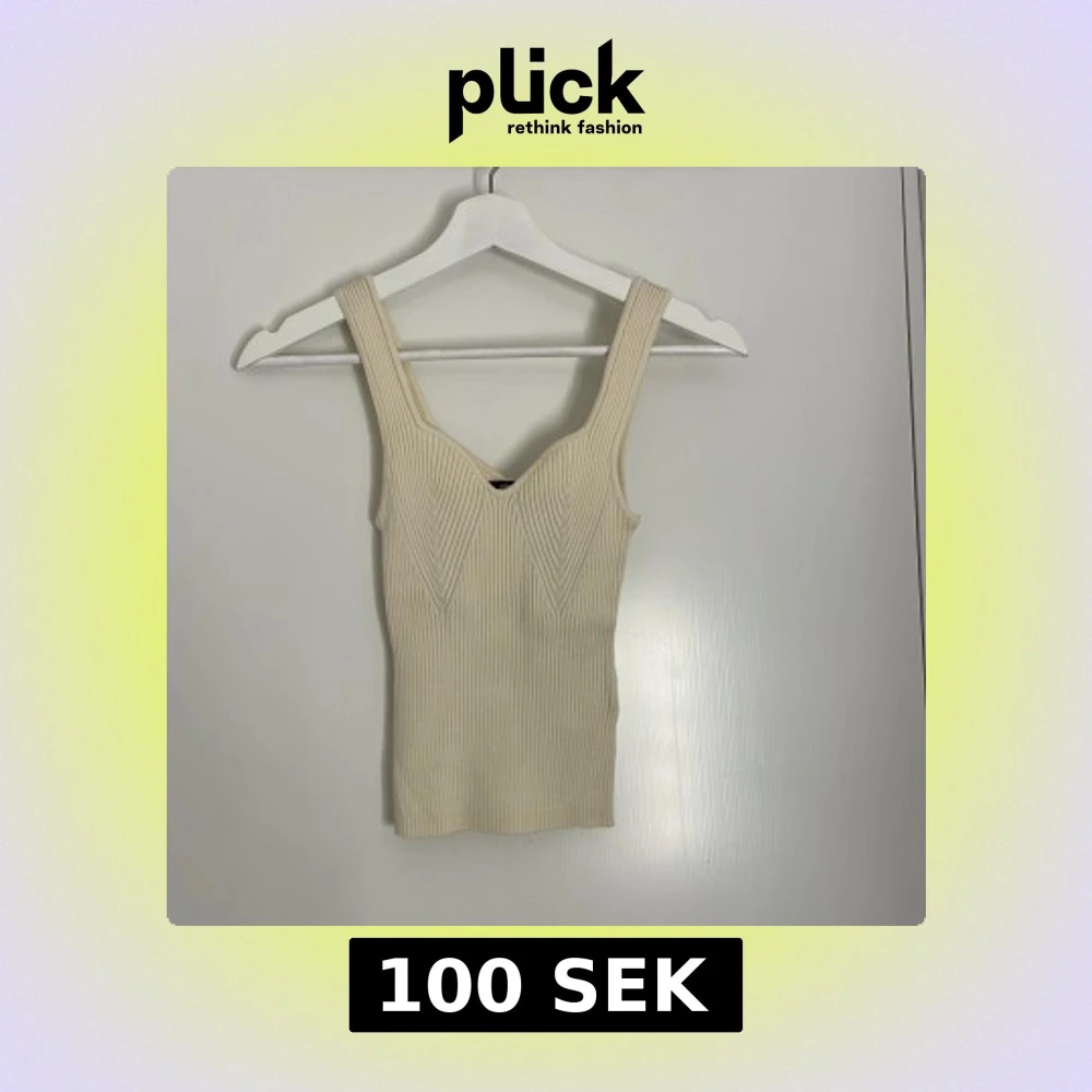 Supersnygg ribbad linnetopp i beige med breda axelband och markerad v-ringning. Toppen är stickad och har en figurnära passform som framhäver siluetten. Perfekt att styla för en clean look. (Aldrig använd)