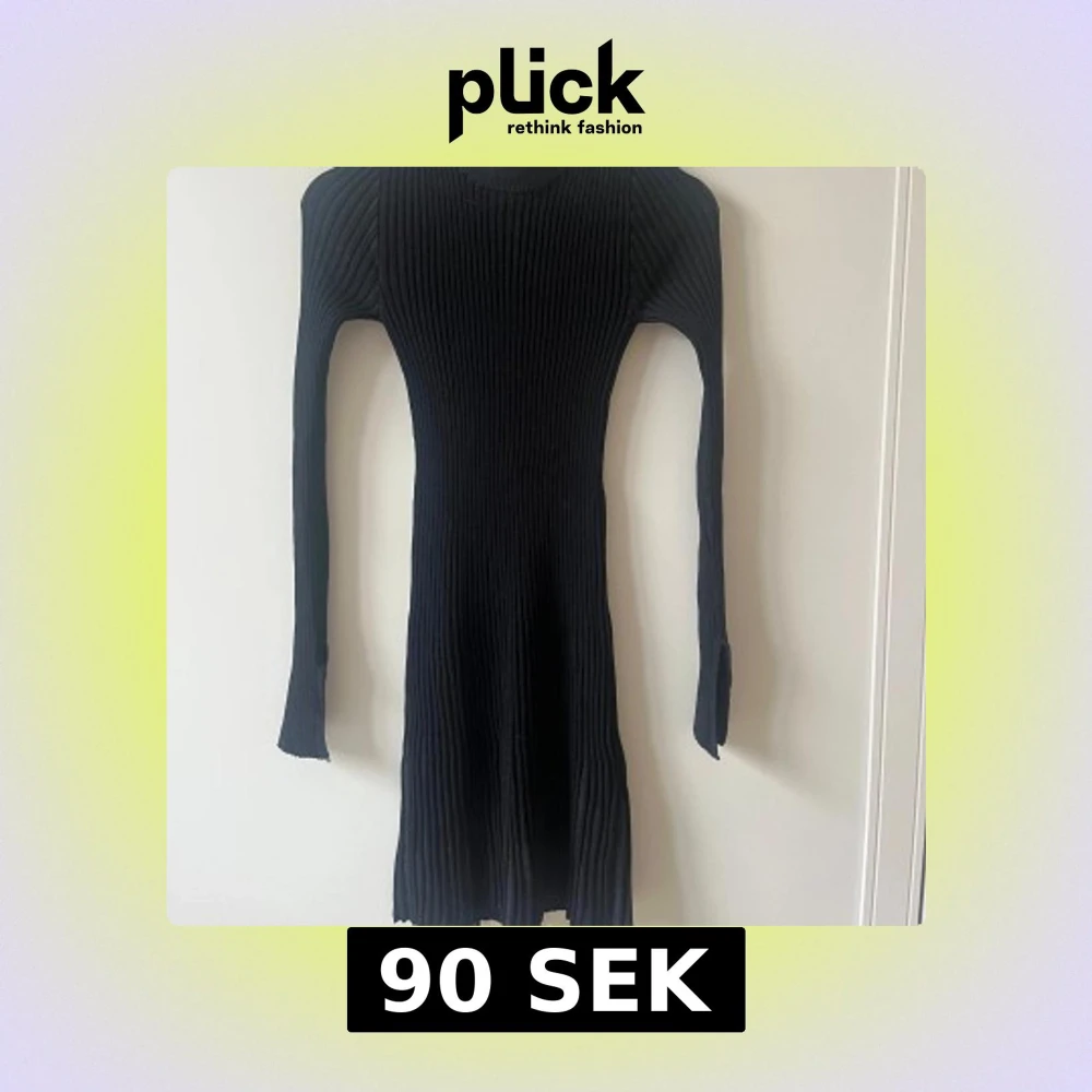 Säljer en svart ribbad klänning i storlek XS. Klänningen har lång ärm, tight passform och är i ett stretchigt material. Aldrig använd!