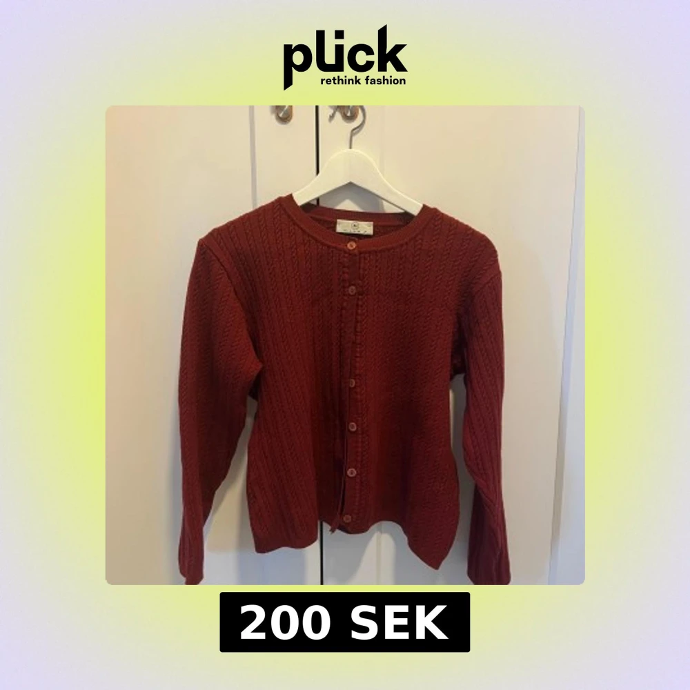 Säljer en snygg röd kofta från Micha. Den är stickad med ett diskret mönster och har knappar framtill. Perfekt för kyligare dagar. Finns ingen storlek men passar mig som vanligtvis har xs, s!