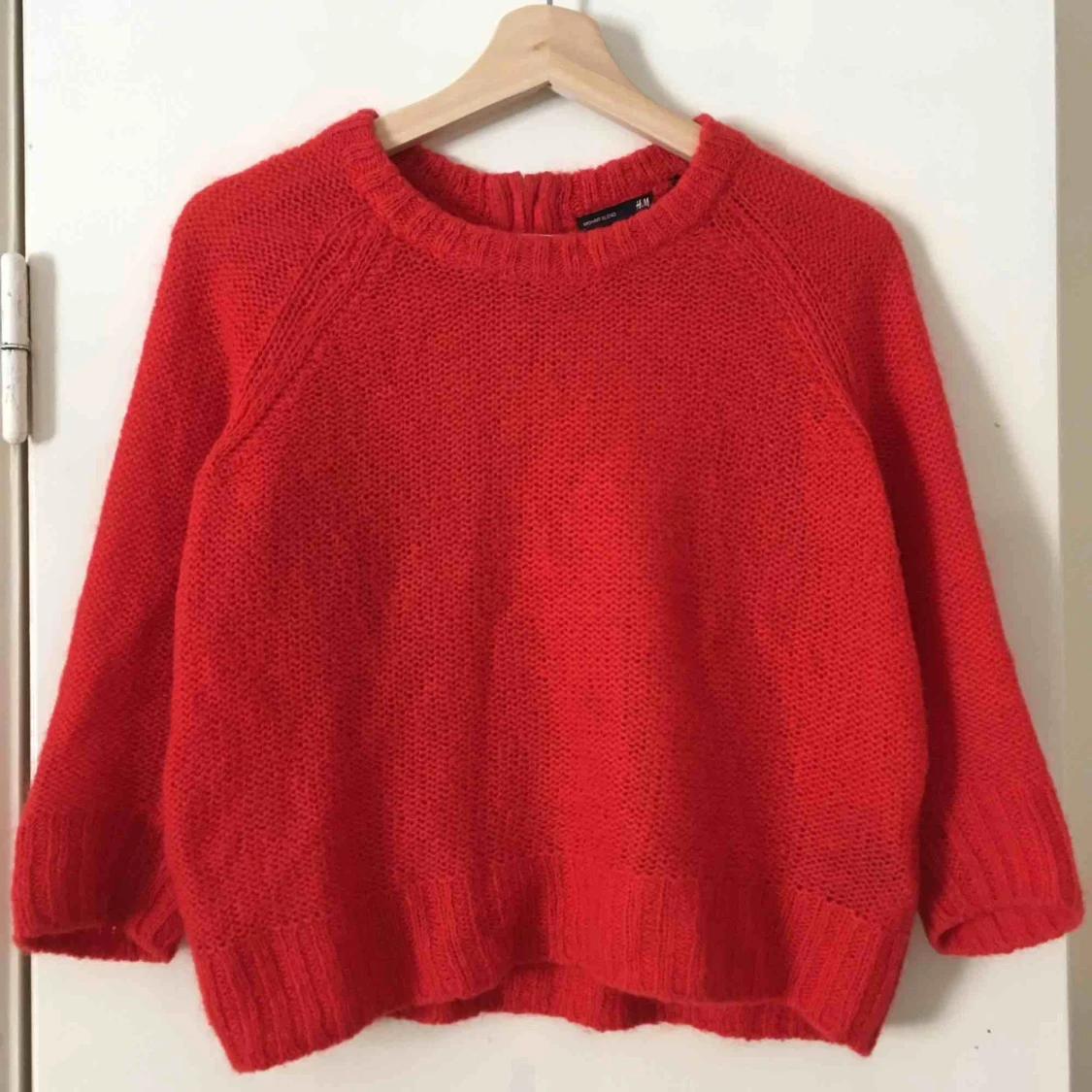 Gosig klarröd stickad tröja, i mohairblandning. Jag som är en M brukade använda tröjan ihop med höga jeans, det funkade bra ihop! ✨