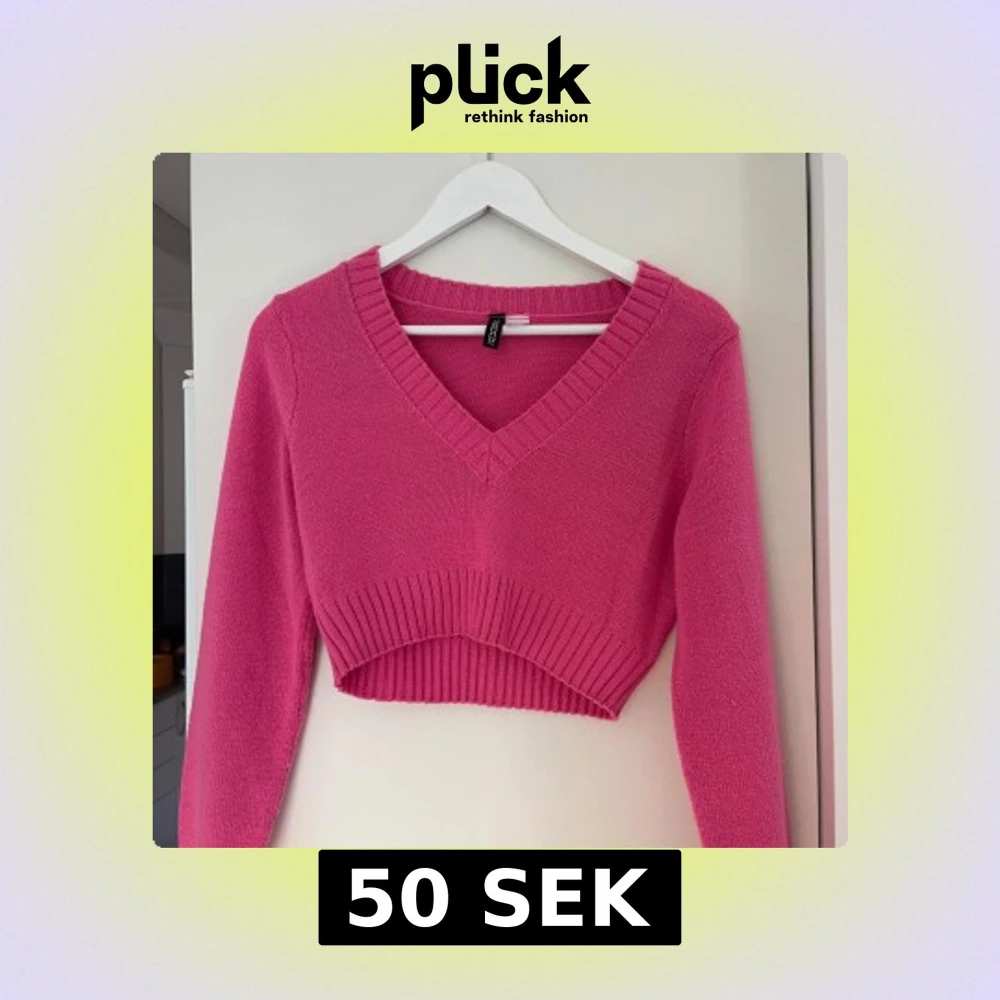 Superfin rosa croppad stickad tröja från H&M Divided. Tröjan har v-ringning, ribbade muddar och lång ärm. Använd 1 gång, väldigt mjukt material.