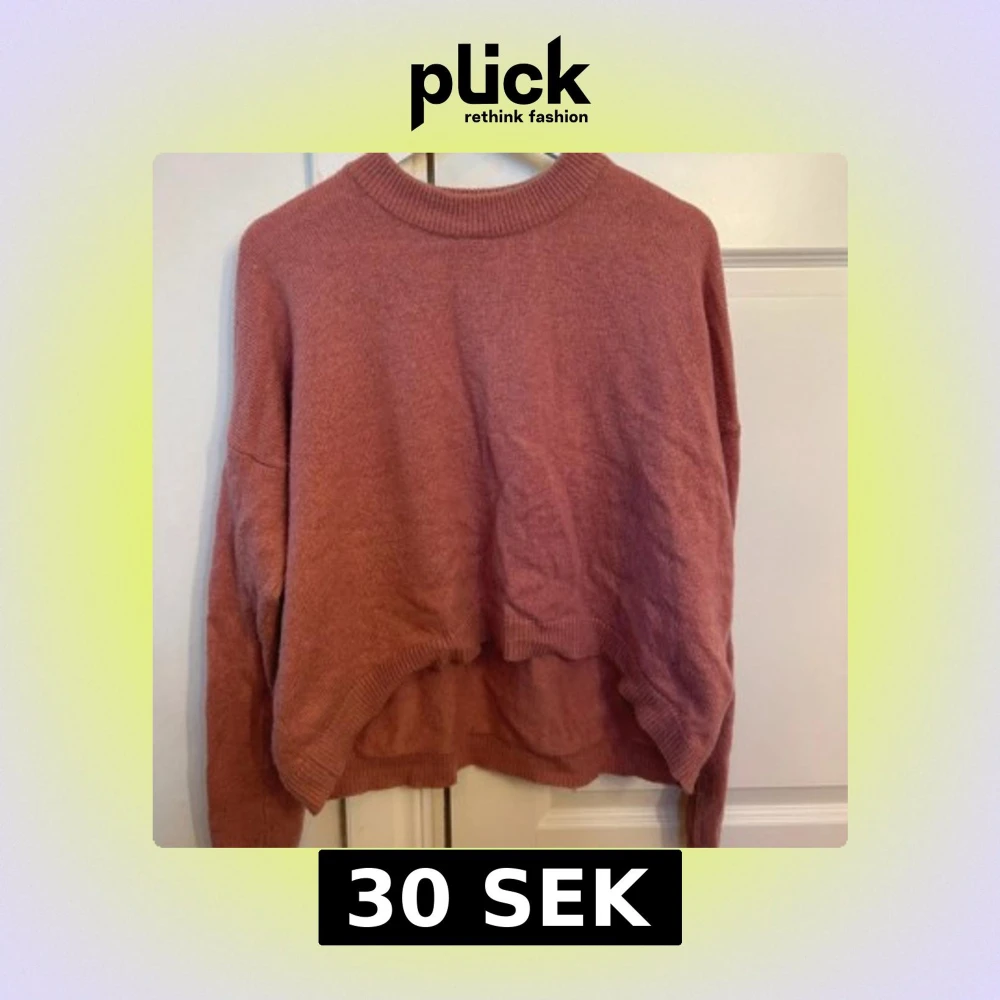 Mysig rosa stickad tröja med croppad passform och längre baktill. Tröjan har rund halsringning och långa ärmar. Perfekt för lager-på-lager och chill dagar. Från hm