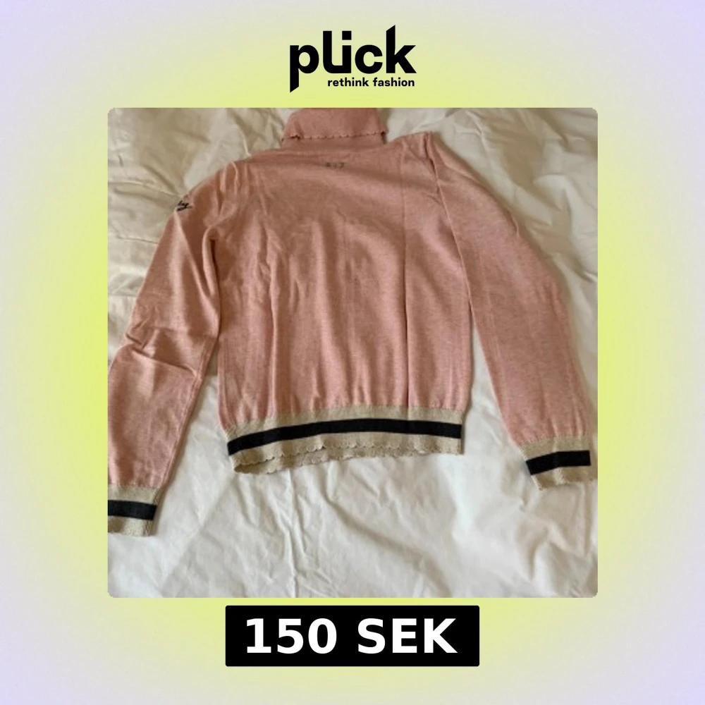 Säljer en söt rosa polotröja från Odd Molly i 100% bomull. Tröjan har långa ärmar och ribbade detaljer vid ärmslut och nederkant med grå rand.