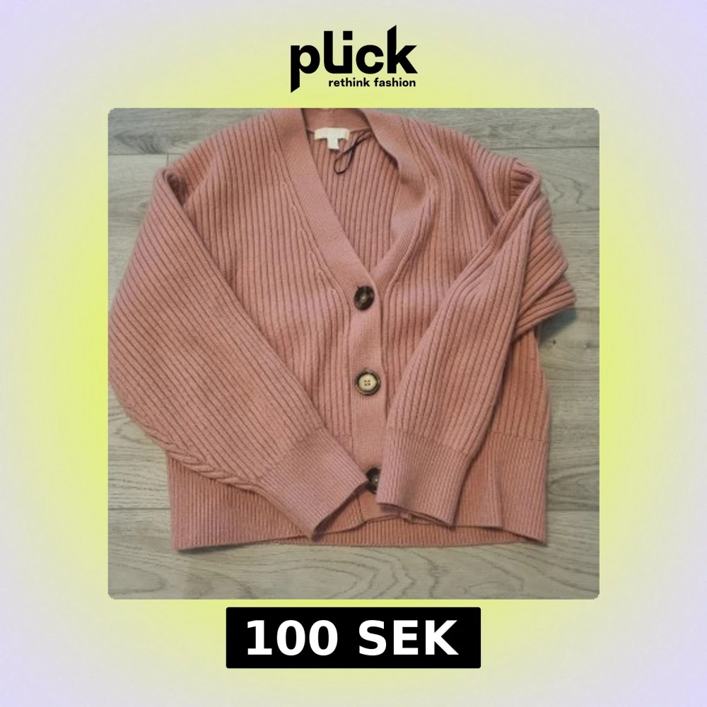 Rosa ribbad kofta med stora knappar