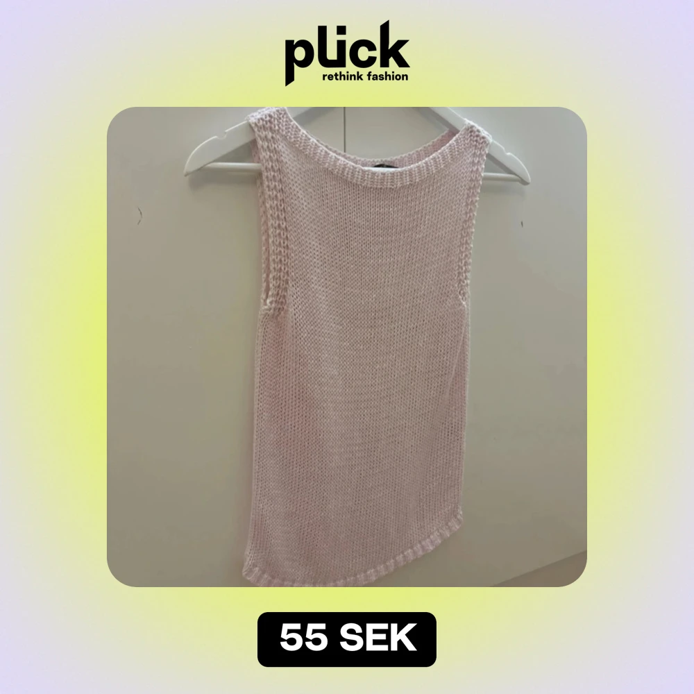 Säljer en söt rosa stickad topp i ärmlös design. Den har en enkel och stilren look med rund halsringning. Bra skick!