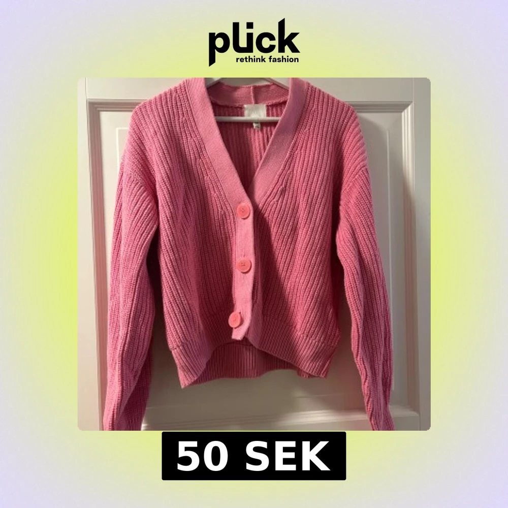 Säljer en söt rosa stickad kofta med knappar framtill. Koftan har en v-ringad design. Superfin till en sommarkväll och när som helst.