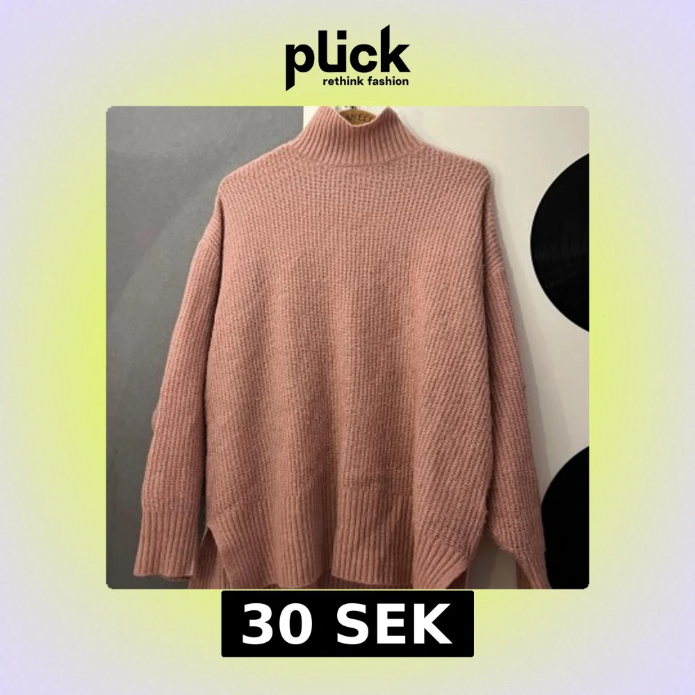 Mysig rosa stickad polotröja från H&M i storlek L. Tröjan har en hög polokrage, lång ärm och ribbade muddar samt nederkant. Perfekt för lager-på-lager och chill höst- och vinterstil.