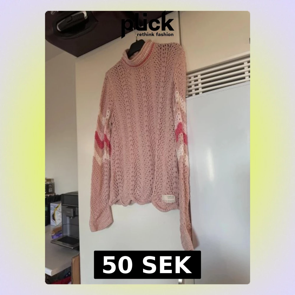 Säljer en ljusrosa stickad polotröja från Odd Molly med lång ärm och snygga vågiga mönster i vitt och rosa på ärmar och rygg. Tröjan har en hög krage med rosa detalj och är genombruten i materialet för en cool look. Storlek 1 som enligt deras storleksguide motsvarar en S. Mycket fint skick, jag hittar inga synliga anmärkningar eller defekter.
