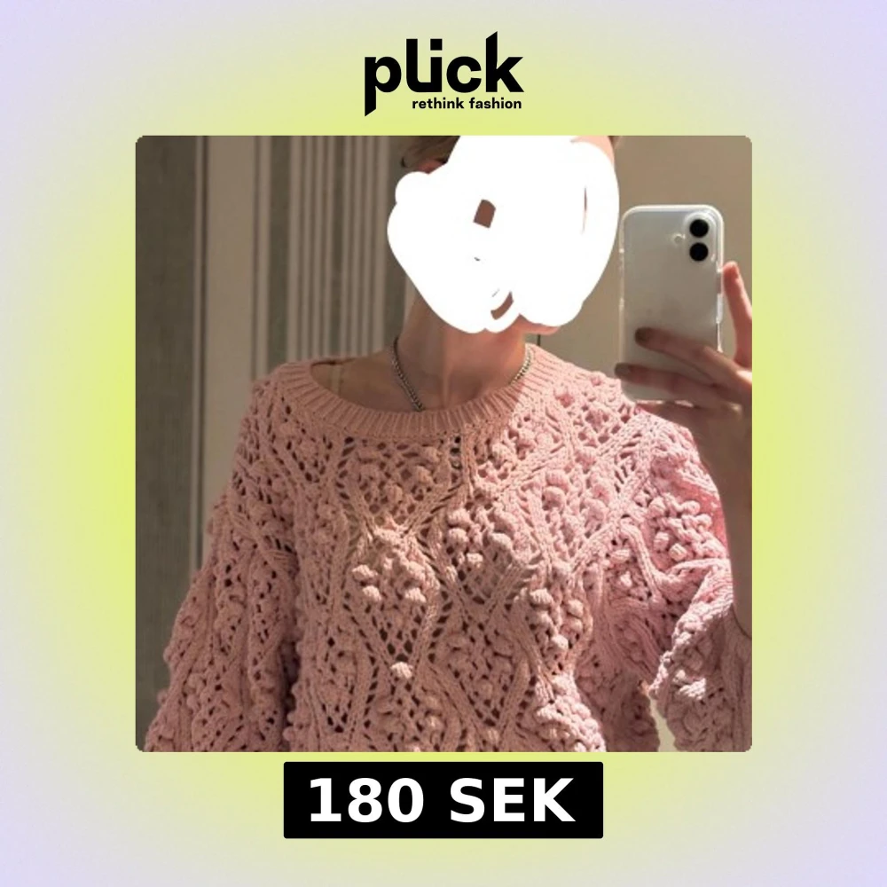 Säljer en söt rosa stickad tröja med ett vackert hålmönster. Tröjan har långa ärmar och en rund halsringning. Perfekt för en mysig dag. Hör av er vid frågor eller prisförslag 💞