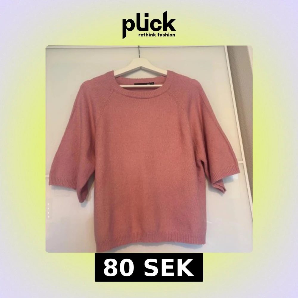 Mysig rosa stickad tröja från 157 med rund halsringning och halvlånga ärmar. Tröjan har en relaxed passform och ribbade muddar vid hals, ärmslut och nederkant. Perfekt för lager-på-lager och chill vardagsstil.