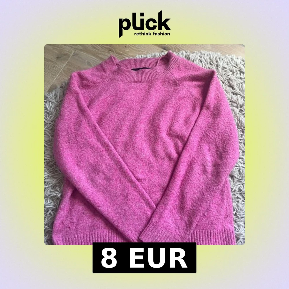 Säljer en rosa stickad tröja från Vero Moda i storlek S. Tröjan har rund hals, ribbade muddar vid ärmslut och nederkant samt långärmad passform. Perfekt för dig som gillar färg och vill ha en mysig och enkel look.