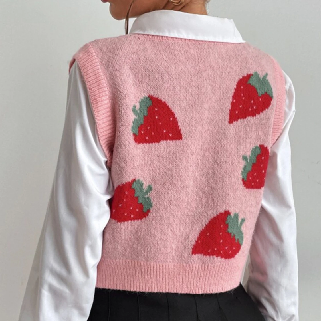 En supersöt rosa väst med jordgubbar från SHEIN i strl S, knappt använd!💓