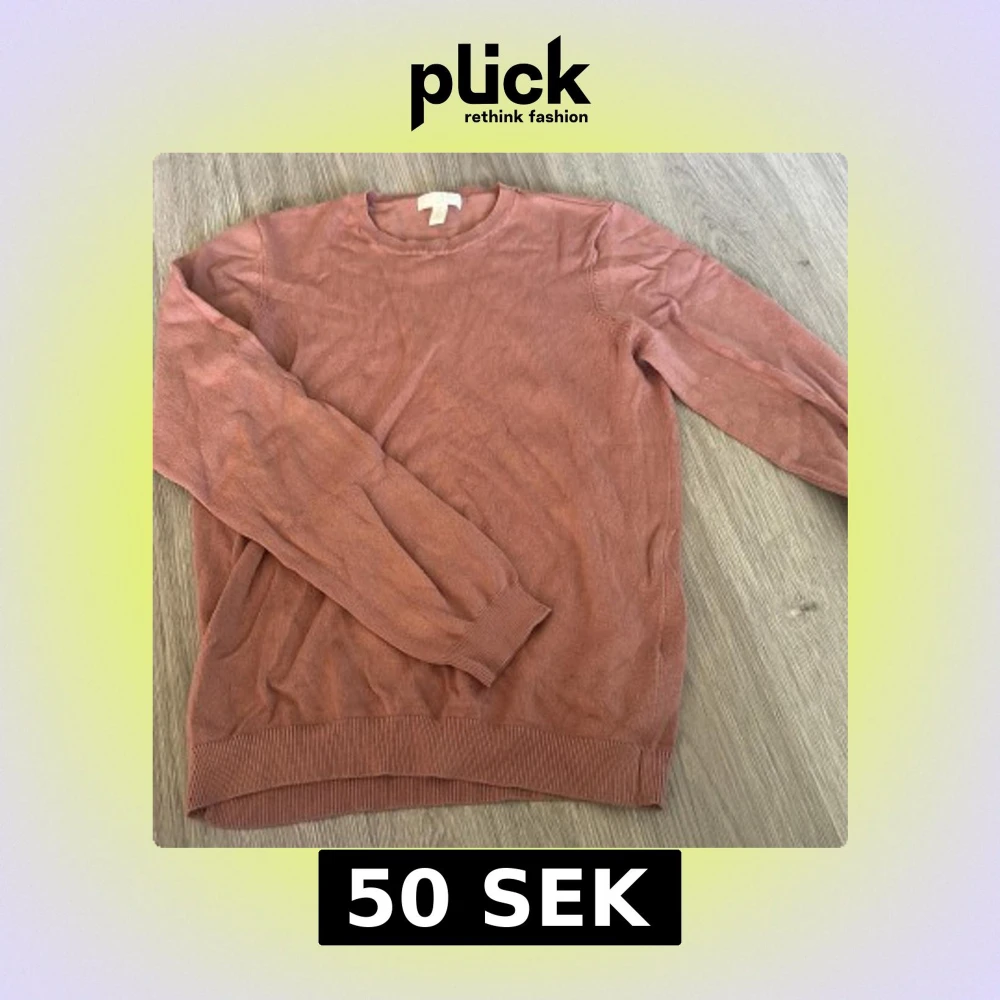 Snygg rostbrun stickad tröja från H&M med rund hals och långa ärmar. Tröjan har ribbade muddar vid ärmslut och nederkant, vilket ger en clean och enkel look. Perfekt för dig som gillar basic men ändå vill ha lite färg i garderoben.