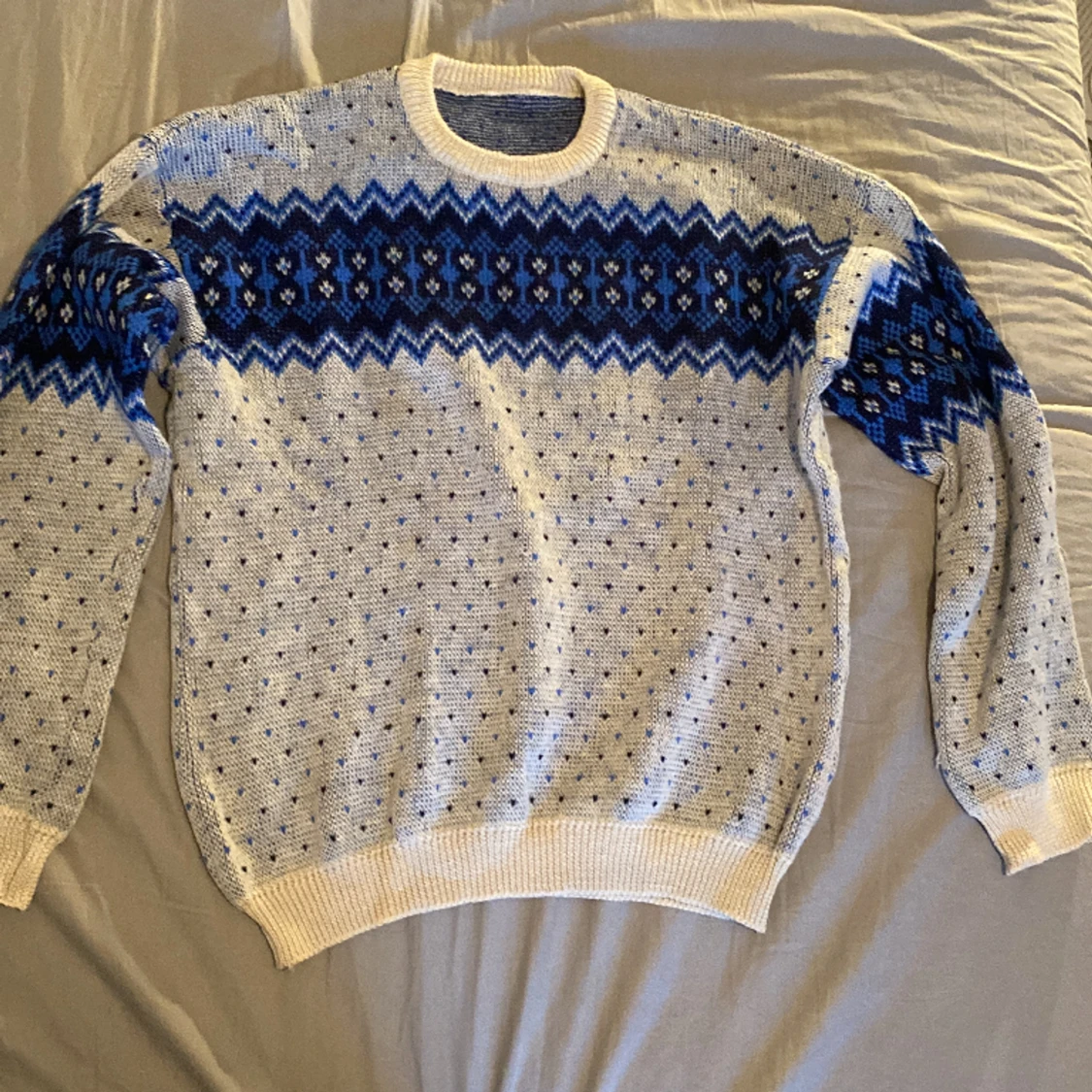 En fair isle tröja i ull. Mycket fint mönster.