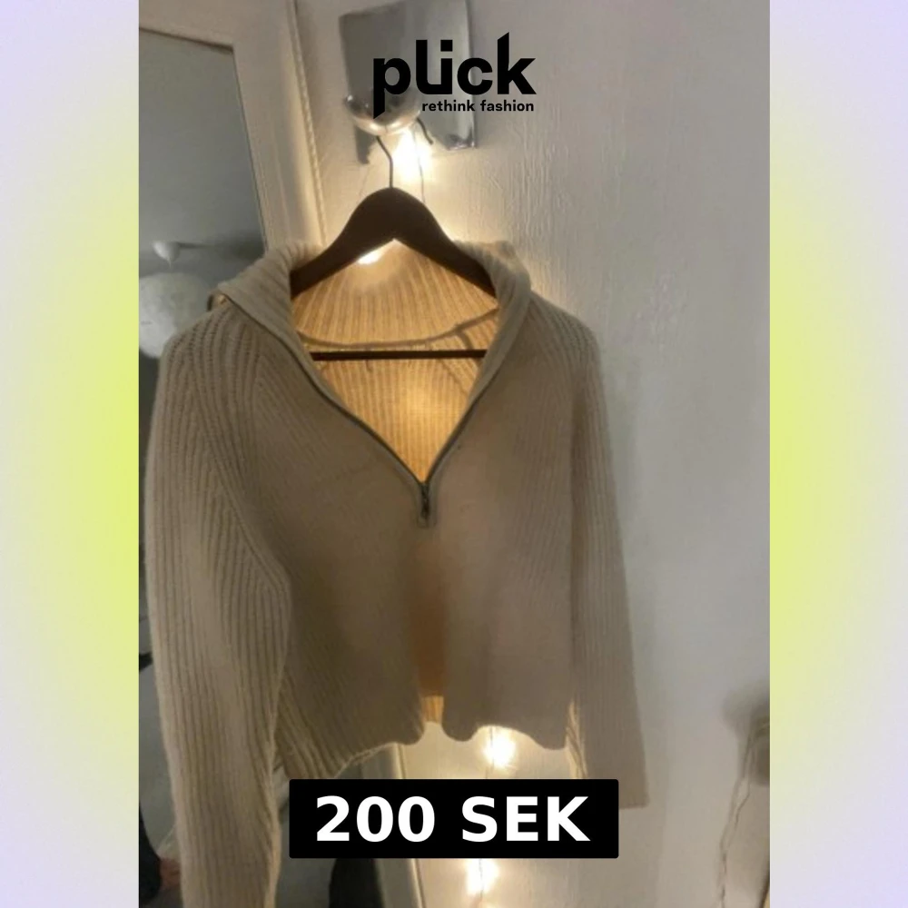 Mysig beige stickad tröja med half zip och hög krage. Tröjan har ribbat mönster, lång ärm och en lite loose passform. Perfekt för lager-på-lager och chill dagar. Enkel att matcha med både jeans och mjukisbyxor.