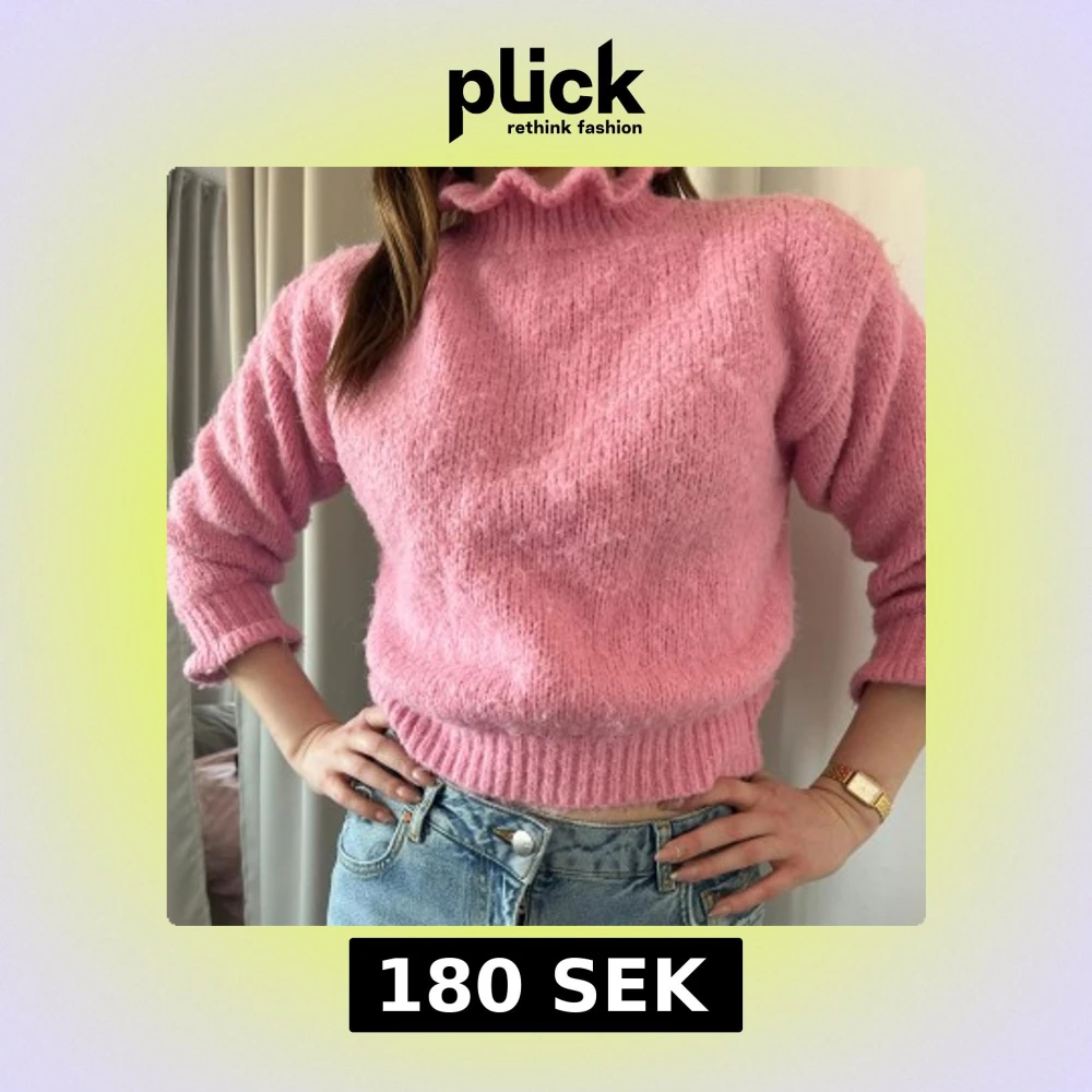 Säljer en mysig rosa stickad tröja med hög krage. Tröjan har långa ärmar och en ribbad kant vid ärmslut och nederkant. Perfekt för kyliga dagar men inte så tjock att man inte kan vandra runt i den på en sommarkväll. Kan bäras i S och möjligtvis XS.