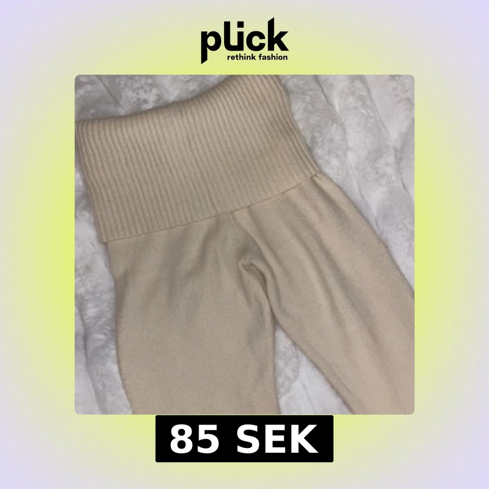 Mysiga beige stickade byxor med extra bred ribbad midja som kan vikas ner. Väldigt stretchiga! Mest för personer under 170cm! (Korta i benen)