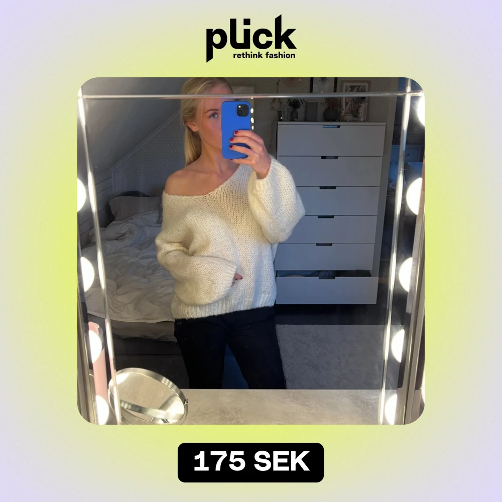 Säljer en supermysig vit stickad tröja med offshoulder-design. Perfekt för höst och vinter, den är både varm och stilren. Tröjan har en loose passform och långa ärmar, vilket gör den idealisk för en avslappnad look. Passar perfekt till jeans eller leggings för en chill dag hemma eller ute.