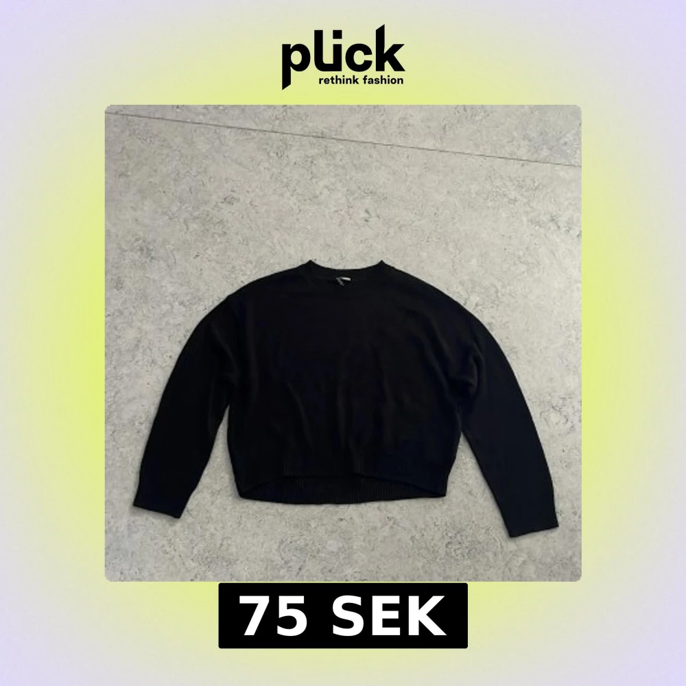 En svart stickad tröja från H&M Divided i storlek S. Tröjan har rund halsringning, lång ärm och ribbade muddar vid ärmslut och nederkant, även lite kortare nederkant fram. Enkel och clean design som är lätt att matcha med allt. Lite knottig från att ha blivit tvättad ett par gånger, annars inga defekter.