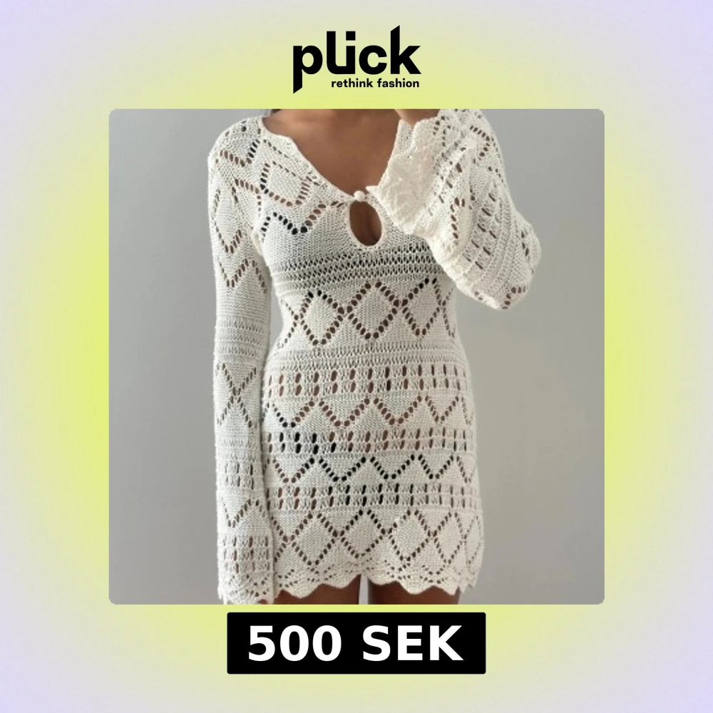 Superfin vit stickad kortklänning