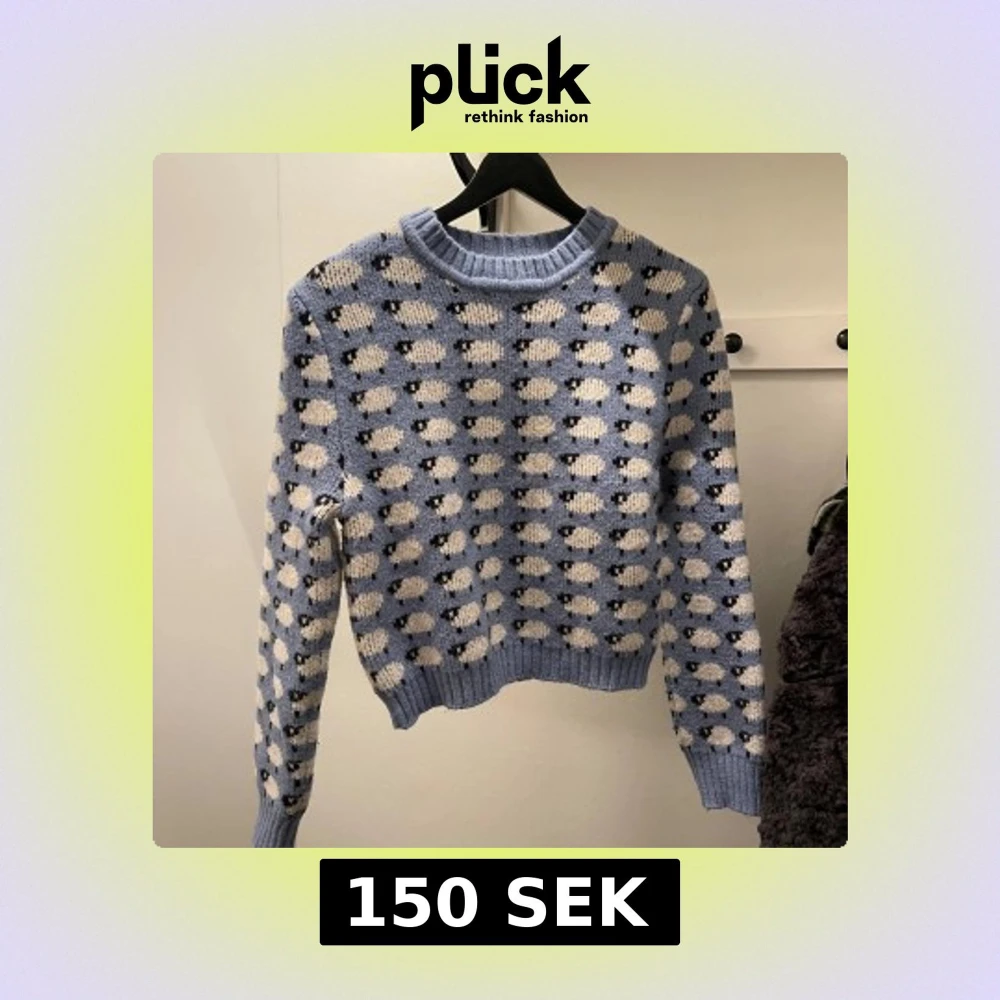 Säljer en söt blå stickad tröja från BBWM Woman med ett charmigt fårmönster i vitt och svart. Tröjan har långa ärmar och ribbstickade muddar vid ärmslut och nederkant. Står M i tröjan men liten i storlek så mer en xs/s