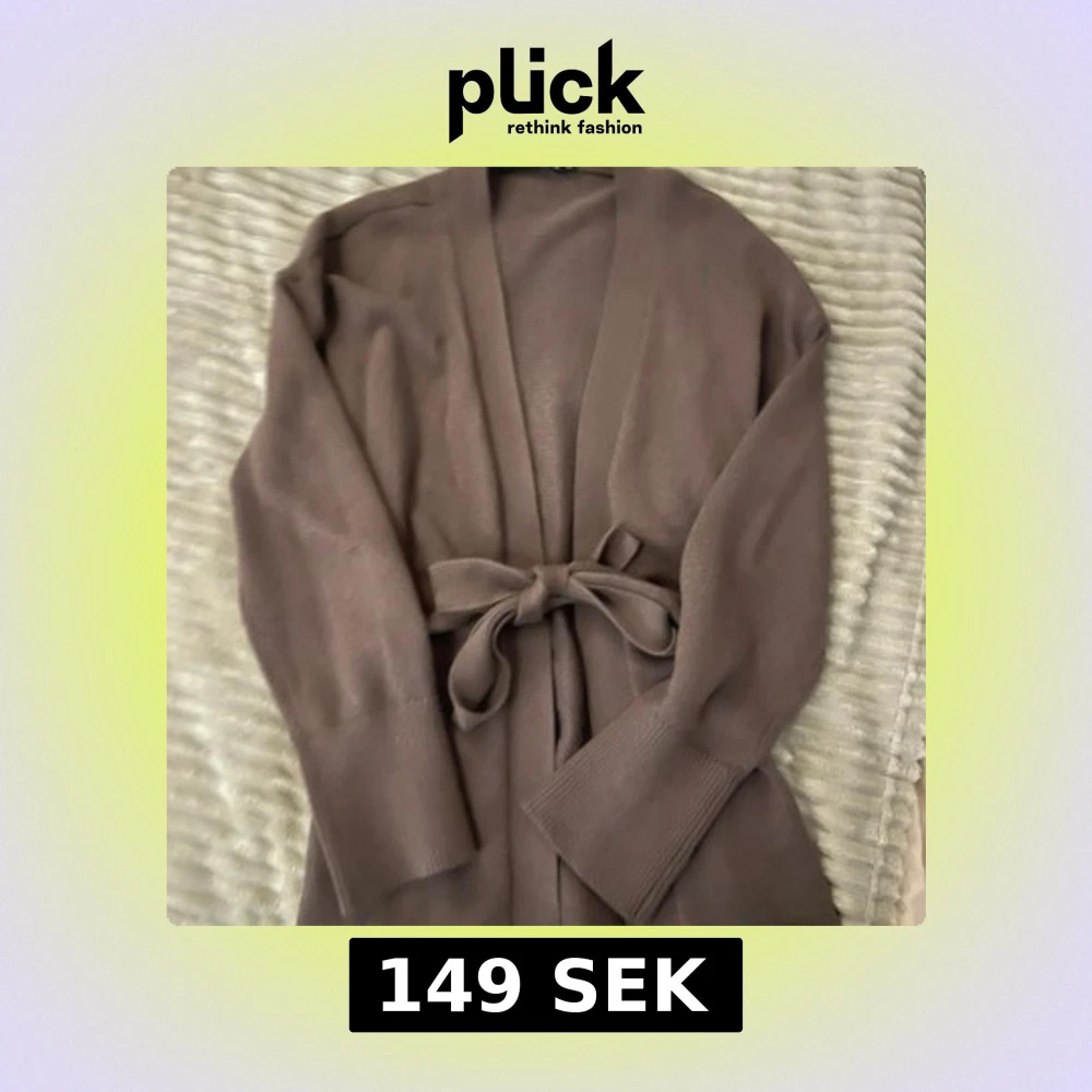 Säljer en brun väldigt populär , stickad kofta från 157 i storlek S. Koftan har lång ärm och ett matchande bälte i midjan för en chill look. Materialet är mjukt och skönt, perfekt för lager-på-lager. Enkel design utan knappar eller dragkedja. Helt oanvänd