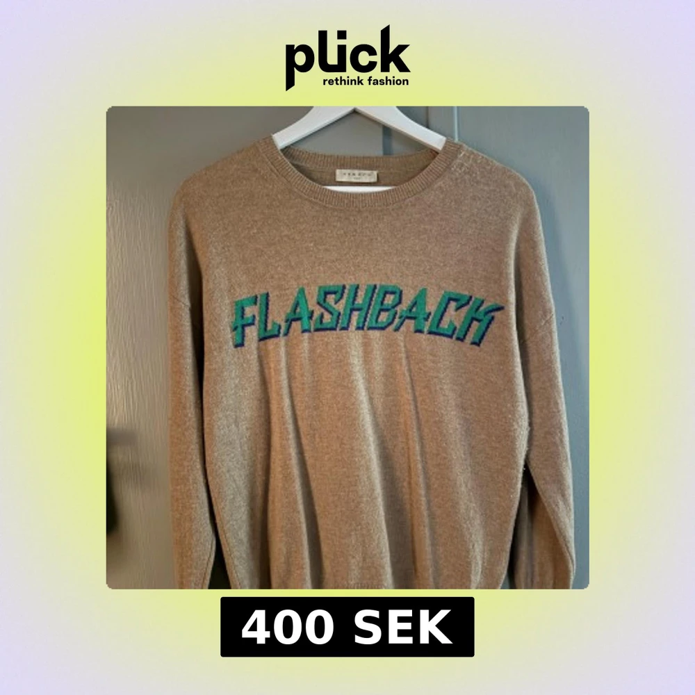 Beige stickad tröja från Sandro med 'FLASHBACK'-tryck i grönt. Knappt använd💕