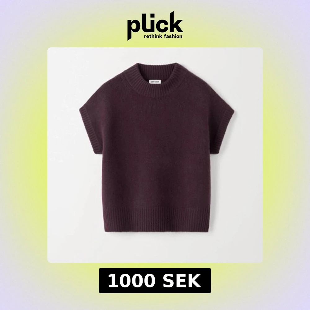 Säljer en mörklila stickad väst från Soft Goat i storlek S. Västen har en hög, ribbad halsringning och breda ribbade kanter vid ärmhål och nederkant. Inga skavanker💜nypris: 2 697kr