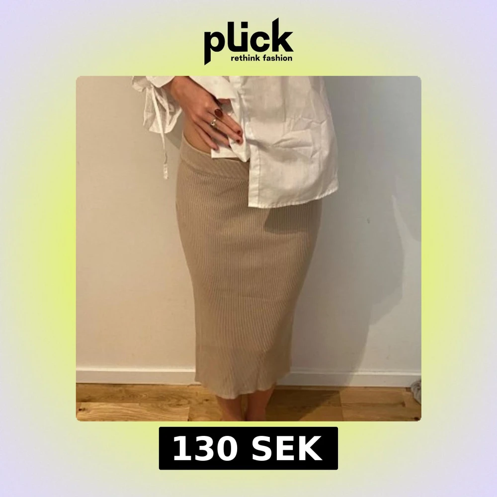 Säljer en beige ribbad långkjol med tight passform. Kjolen är stickad och har en mjuk, elastisk midja som sitter skönt. Perfekt för dig som gillar stilrena och enkla plagg med snygg struktur. Passar till både sneakers och boots.