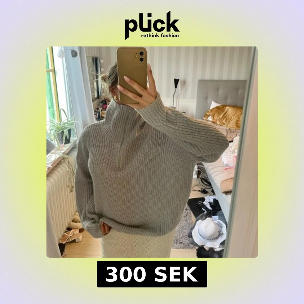 Supermysig ljusgrå stickad tröja med half zip och hög krage. Oversized passform och långa ärmar, perfekt för lager på lager. Grovstickad struktur som ger en chill och trendig vibe.