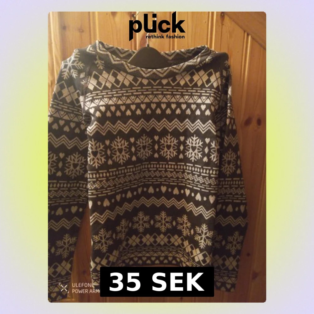 Mysig stickad tröja i svart och vitt med vinterinspirerat mönster av snöflingor, hjärtan och geometriska former. Tröjan har långärmad design och passar perfekt för kalla dagar. Materialet är mjukt och värmande, och mönstret ger en riktigt vintrig vibe.