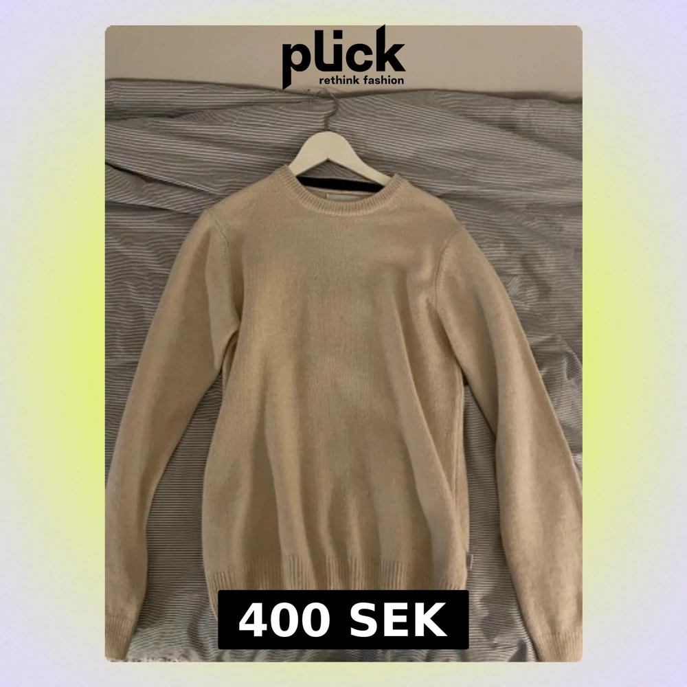 Säljer en stilren beige stickad tröja från Casual Friday i storlek S. Tröjan har rund hals, ribbade muddar vid ärmslut och nederkant samt långärmad passform. Perfekt för dig som gillar enkel och clean look.