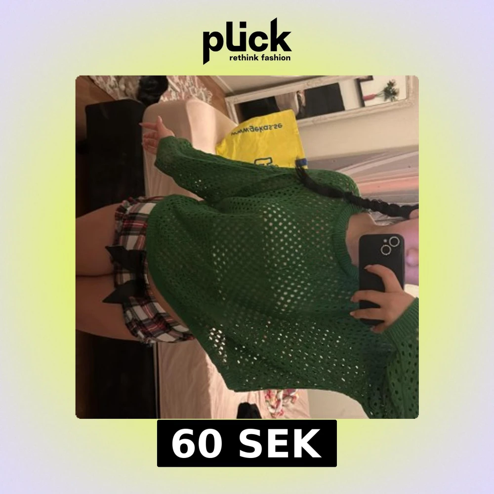 Säljer en snygg grön stickad tröja med ett genombrutet mönster. Tröjan har långa ärmar och en avslappnad passform, perfekt för lager-på-lager-stil. Passar bra till både jeans och kjol. Hör av dig vid intresse! 💚