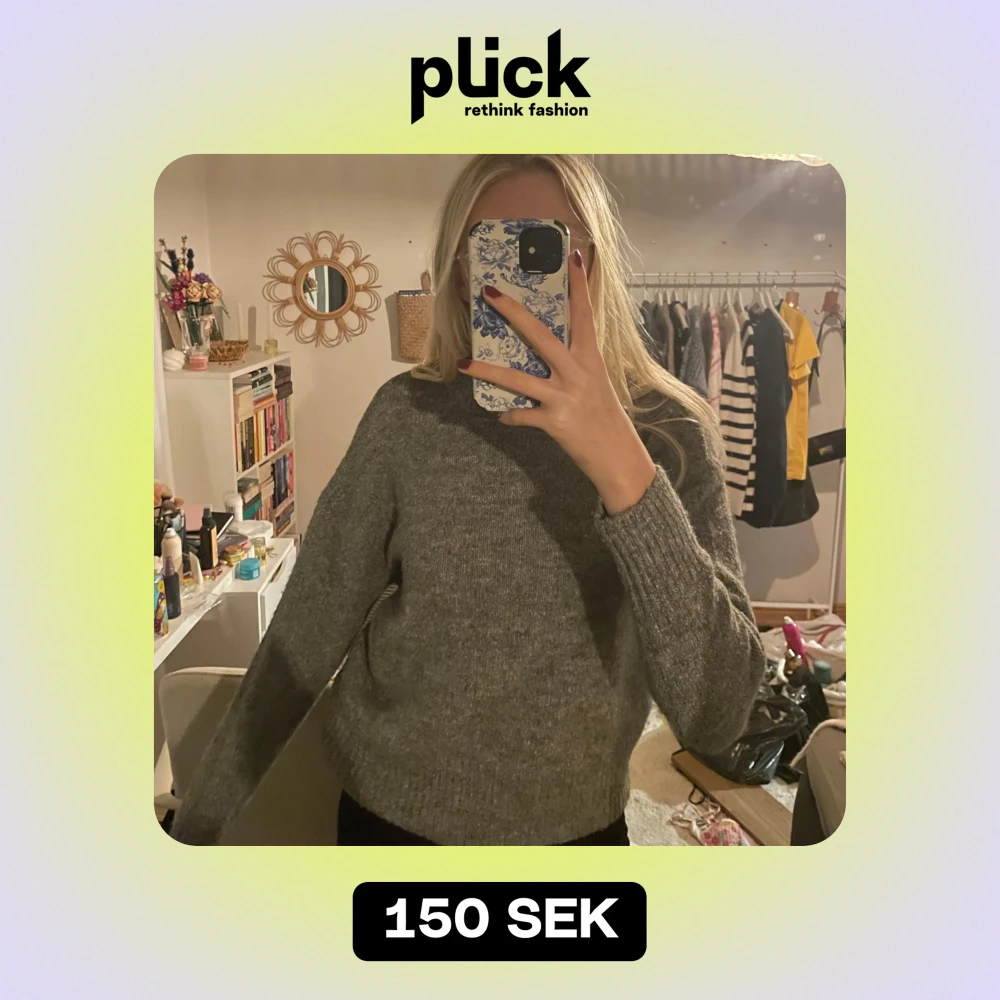 Säljer en mysig grå stickad tröja i mycket bra skick. Perfekt för höst och vinter med sin varma och bekväma passform. Tröjan har långa ärmar och ribbade muddar som ger en klassisk look. Perfekt för att hålla sig varm och stilren under kyliga dagar.