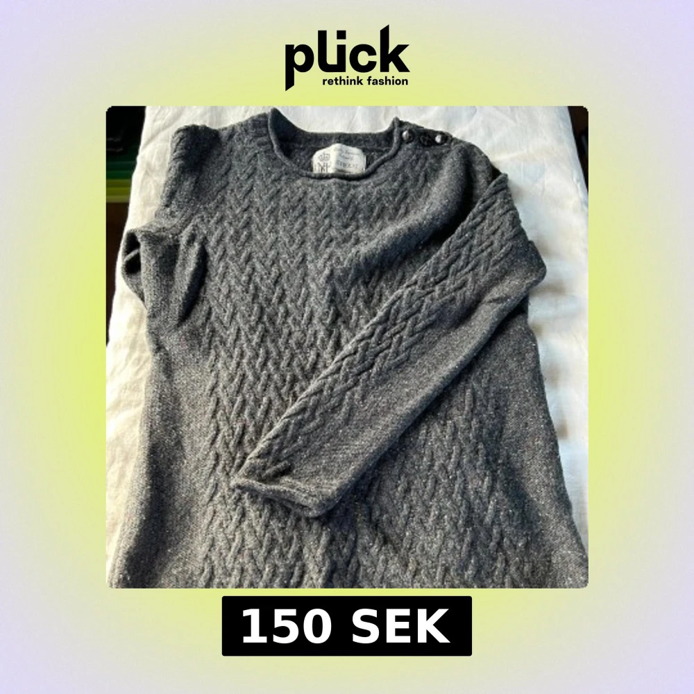 Mysig grå stickad tröja från Newhouse med flätstickat mönster och knappar på axeln. Tröjan är tillverkad i 80% lammull och har långa ärmar. En liten small så här av dig om du vill ha mått