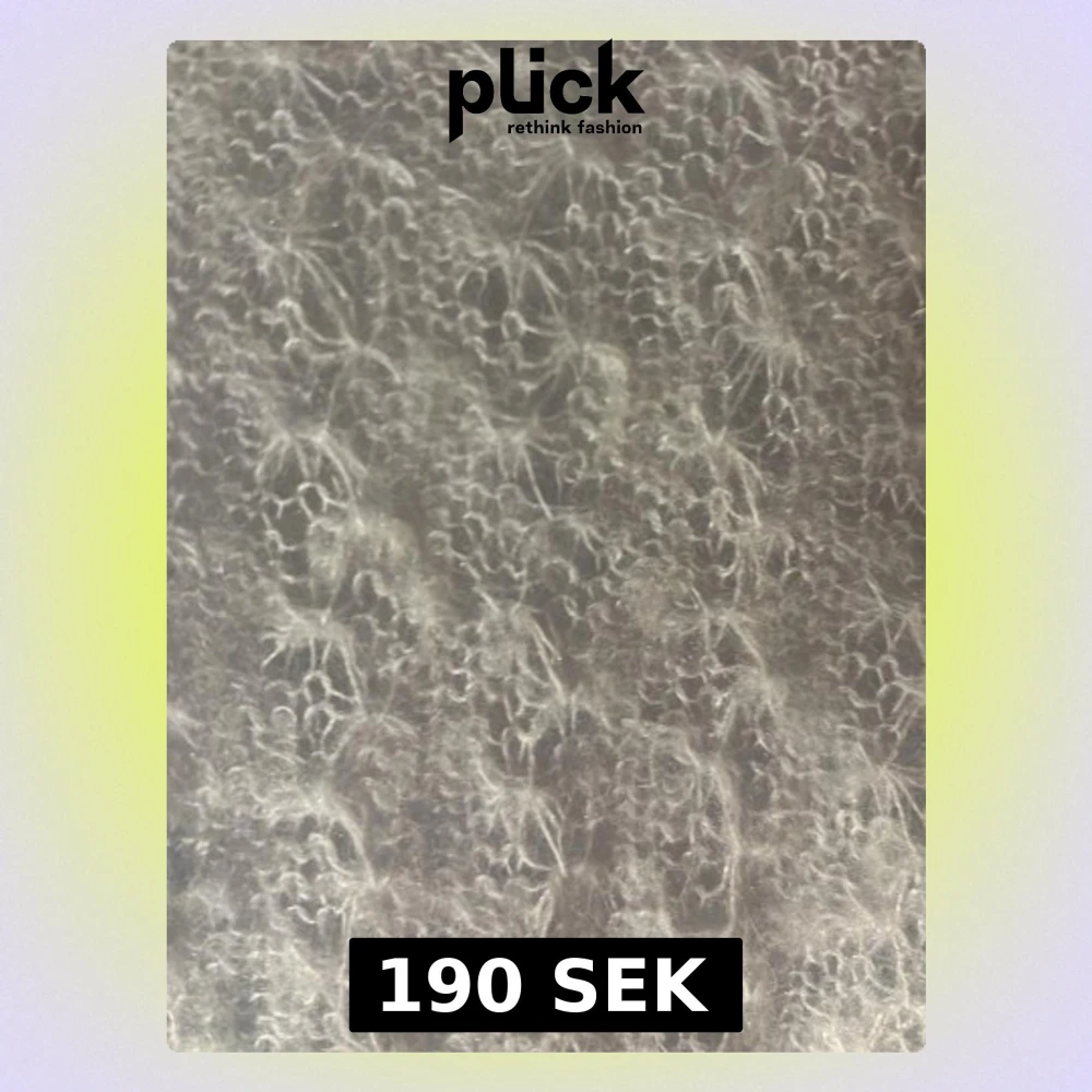 Supermjuk ljusgrå stickad tröja från Holly & Whyte. Tröjan har ett fluffigt, hålmönstrat material och långa ärmar. Tyvärr har tröjan ett medelstort hål på sömmen vid ena armhålan.