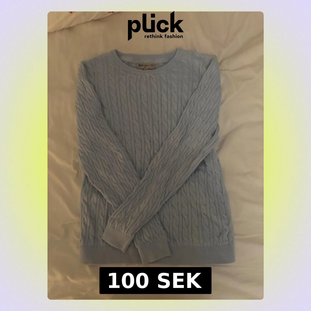 Säljer en jättefin ljusblå kabelstickad tröja i mjukt material. Perfekt till skolan, våren, lager på lager eller bara när man vill se cute men ändå chill. Använd få gånger, i superbra skick.