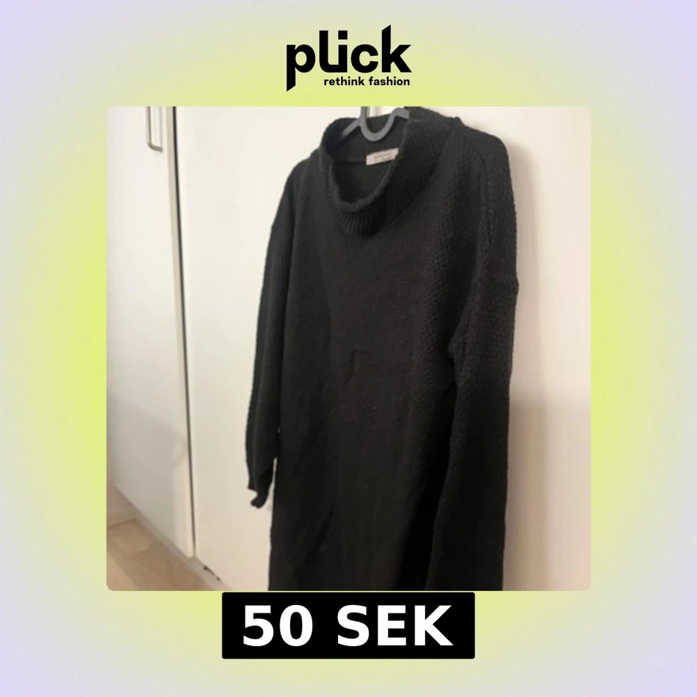 Mysig svart stickad tröja/klänning. Oversize. Saknar snöre runt men går att ha med vanligt skärp eller utan.