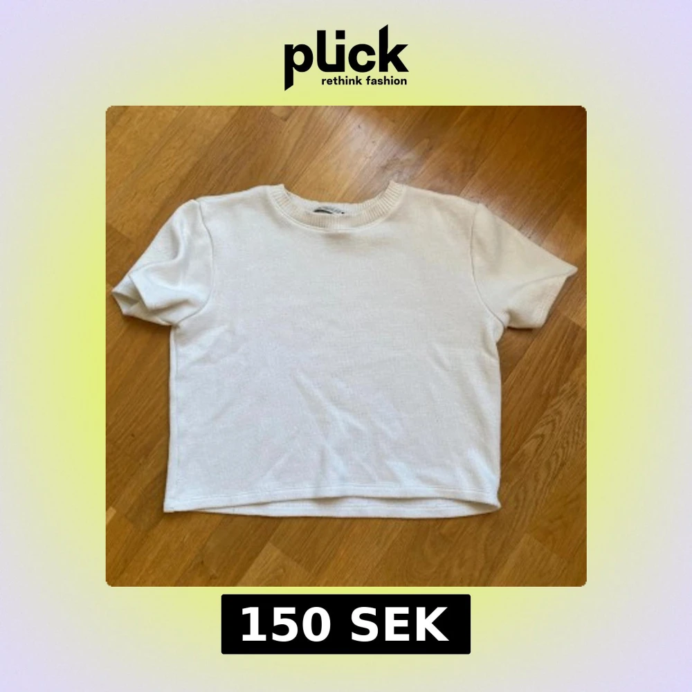 Säljer en enkel och stilren vit stickad tröja med korta ärmar och rund halsringning. Perfekt för en avslappnad och clean look. Passar till det mesta och är superenkel att matcha med andra plagg.