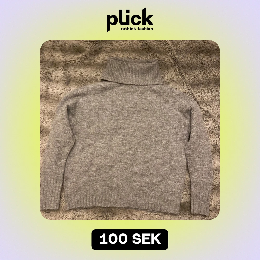 Mysig grå stickad polotröja perfekt för kyliga dagar. Den har en hög polokrage och långa ärmar med ribbade muddar. Tröjan är i mycket bra skick och passar perfekt för både höst och vinter. En klassisk och stilren design som funkar till det mesta!