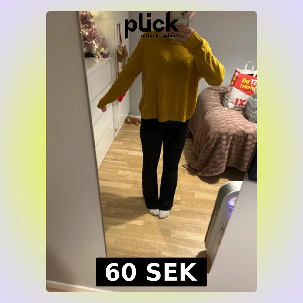 Säljer en chill gul stickad tröja med rundad hals och ribbade muddar vid ärmslut och nederkant. Modellen är loose fit och har långa ärmar, perfekt för dig som gillar färg och vill ha något bekvämt och snyggt.