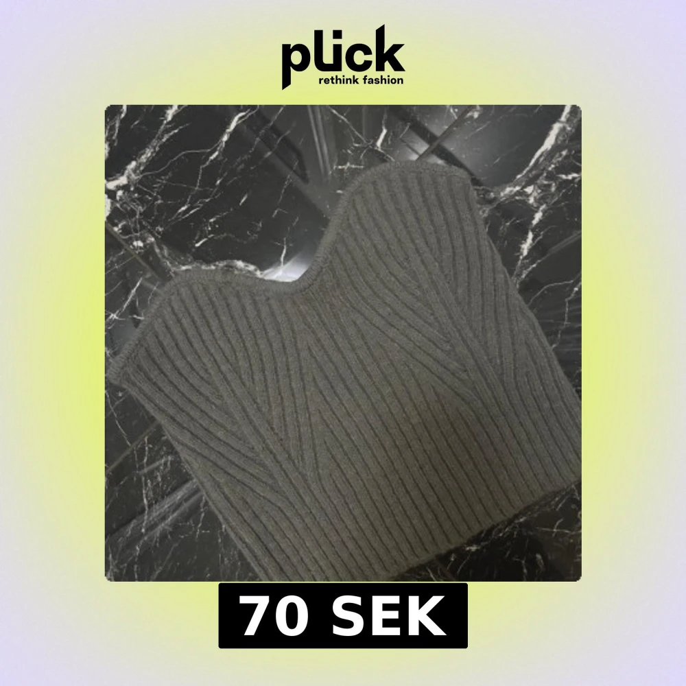 Säljer en mörkgrå stickad tubtopp med ribbad struktur och snygg bandeauform. Toppen är ärmlös och har en mjuk, varm känsla som passar perfekt till lager-på-lager. Den har en stilren look med subtila diagonala ribbmönster för extra edge.