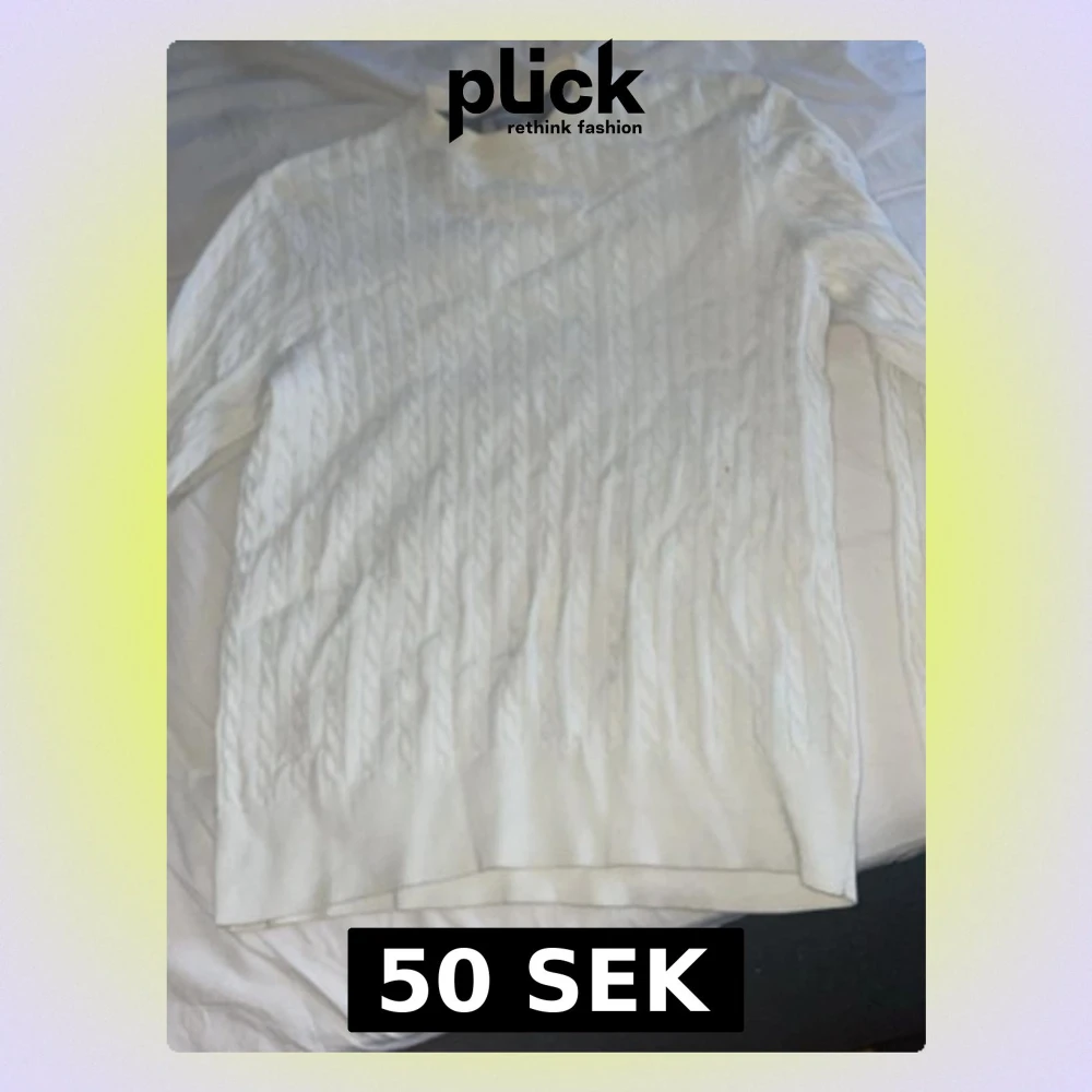 Säljer en vit kabelstickad polotröja med lång ärm och klassisk ribbad kant. Tröjan har en hög hals och är gjord i mjukt stickat material som passar perfekt när det är lite kyligt ute. Snygg att matcha med jeans eller kjol för en clean look.