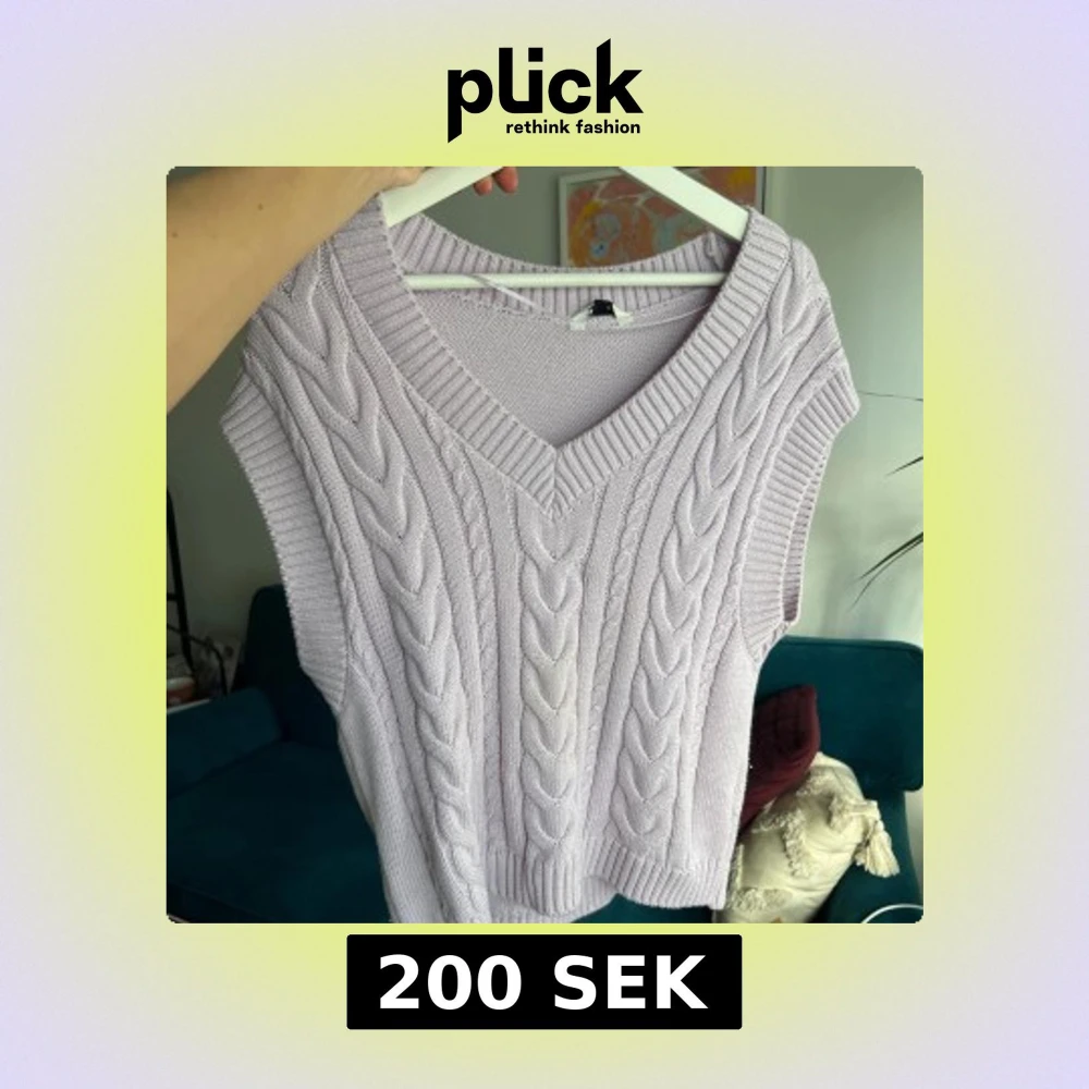 Säljer en ljuslila stickad väst med v-ringning och flätstickat mönster. Perfekt för lager-på-lager-stil och ger en mysig känsla. Passar bra till både skjorta och t-shirt. Xs-m